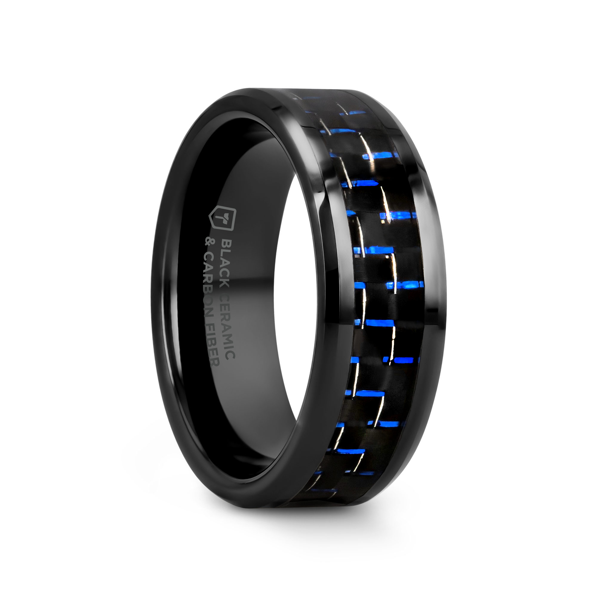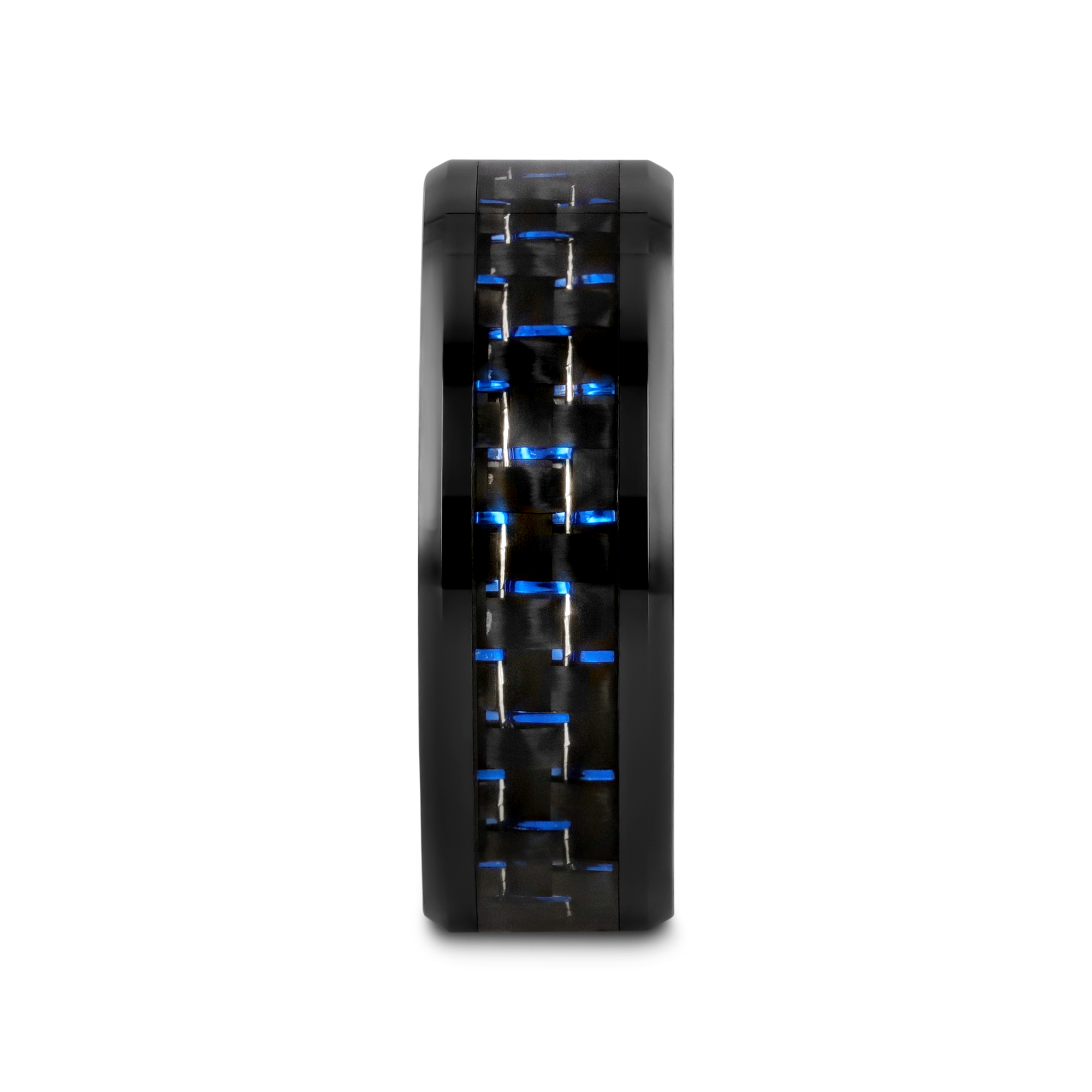 AVITUS Black Beveled Ceramic Ring with Blue and Black Carbon Fiber Inlay - 4mm - 10mm