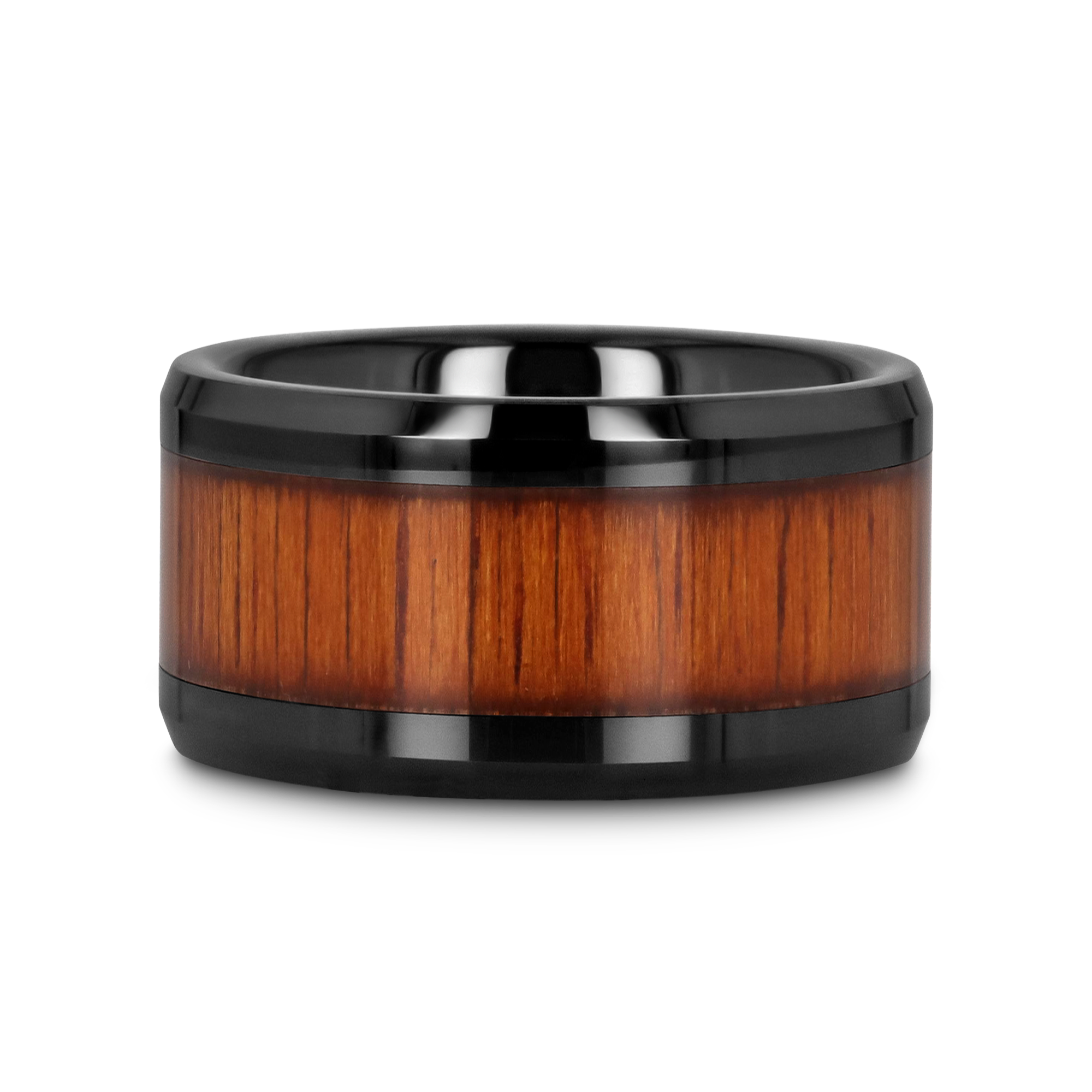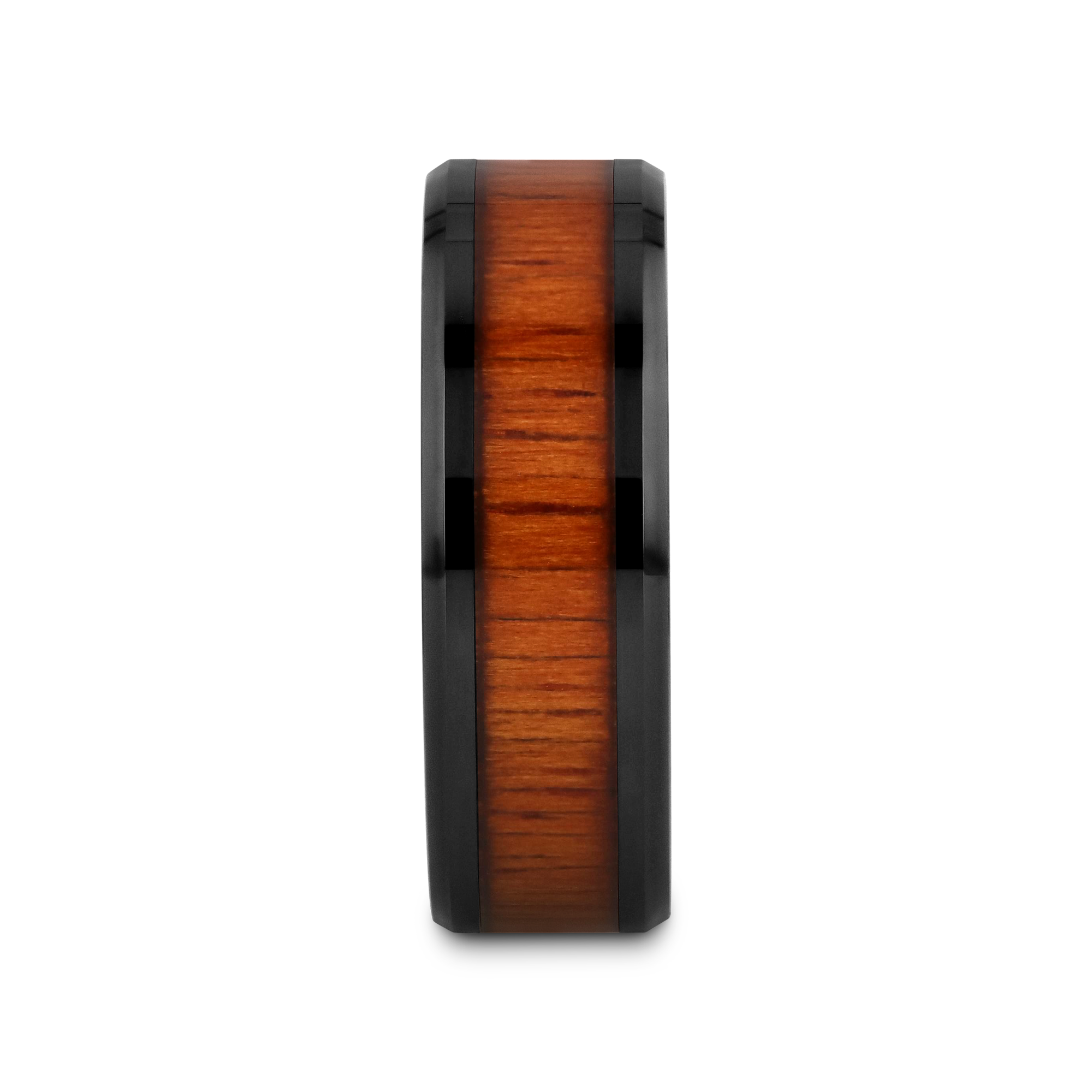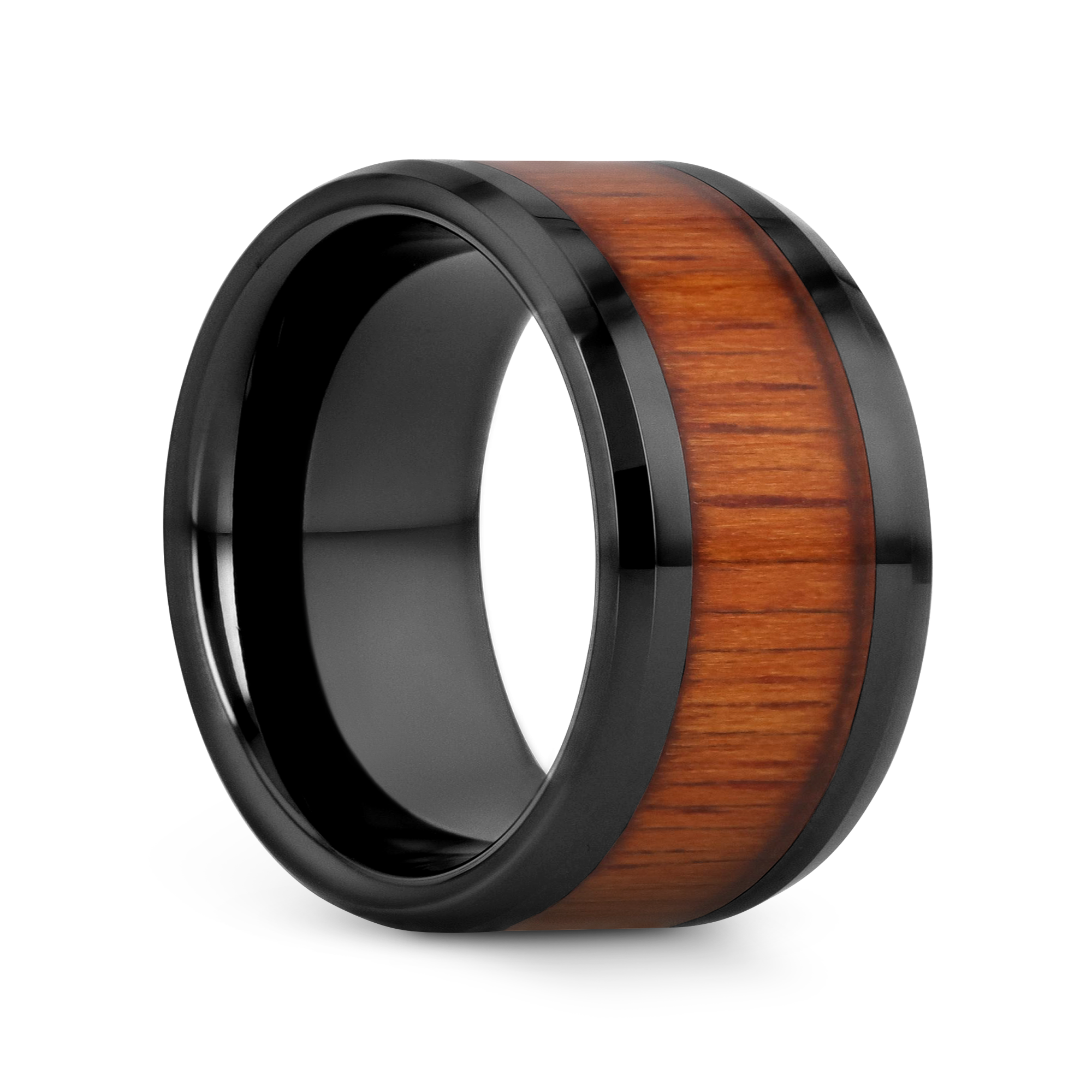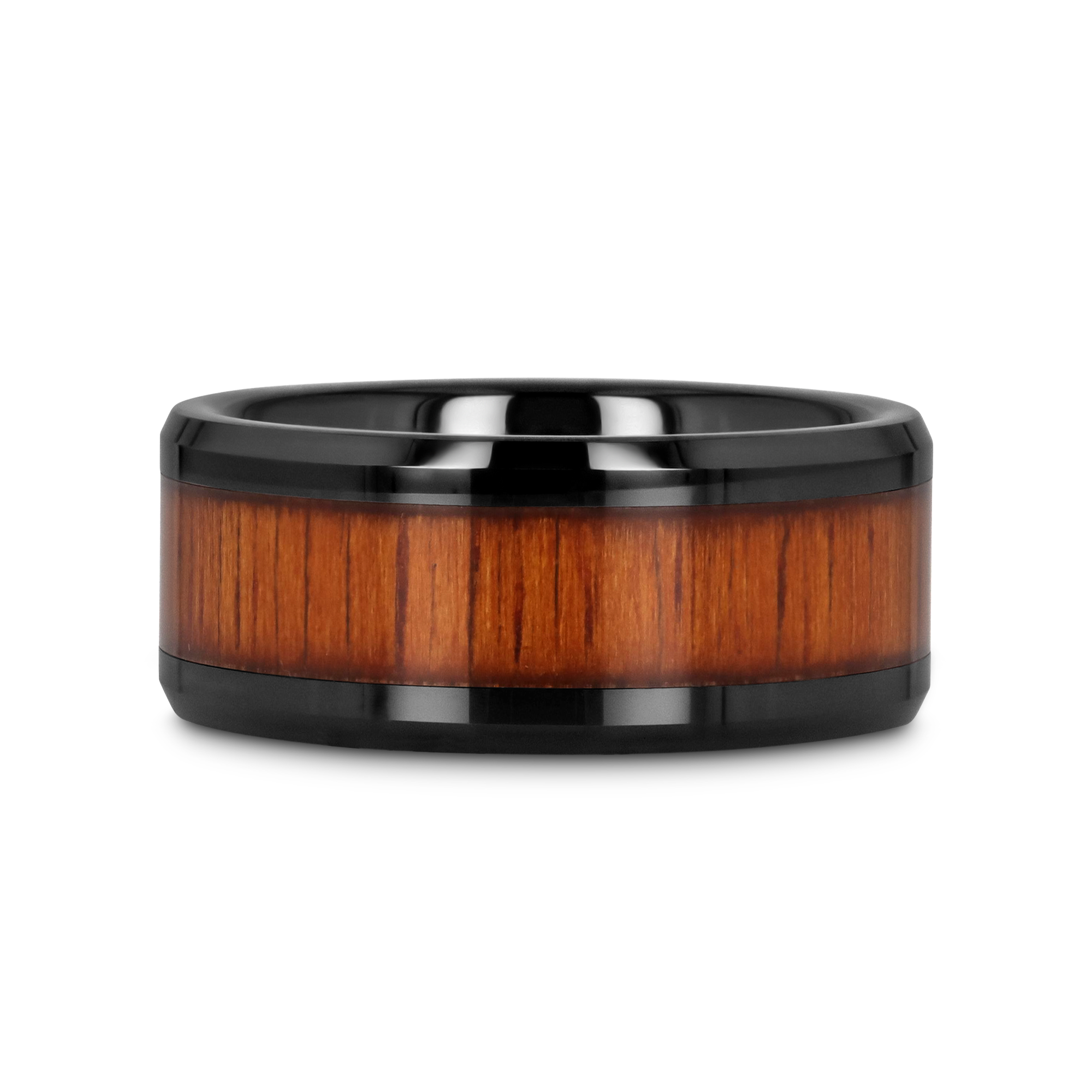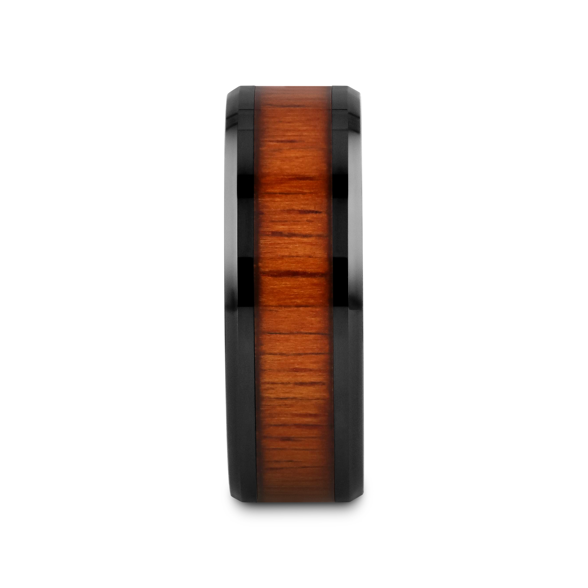 ACACIA Koa Wood Inlaid Black Ceramic Ring with Bevels - 4mm - 12mm