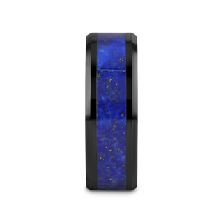 MARLOW Men’s Polished Black Ceramic Wedding Band with Blue Lapis Inlay & Beveled Edges - 8mm