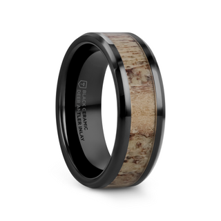 TRES Beveled Black Ceramic Polished Men's Wedding Band with Ombre Antler Inlay - 8mm