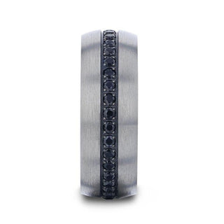 BOURBON Black Zirconium Ring with Whiskey Barrel Wood Inlay and Black Sapphires - 8mm