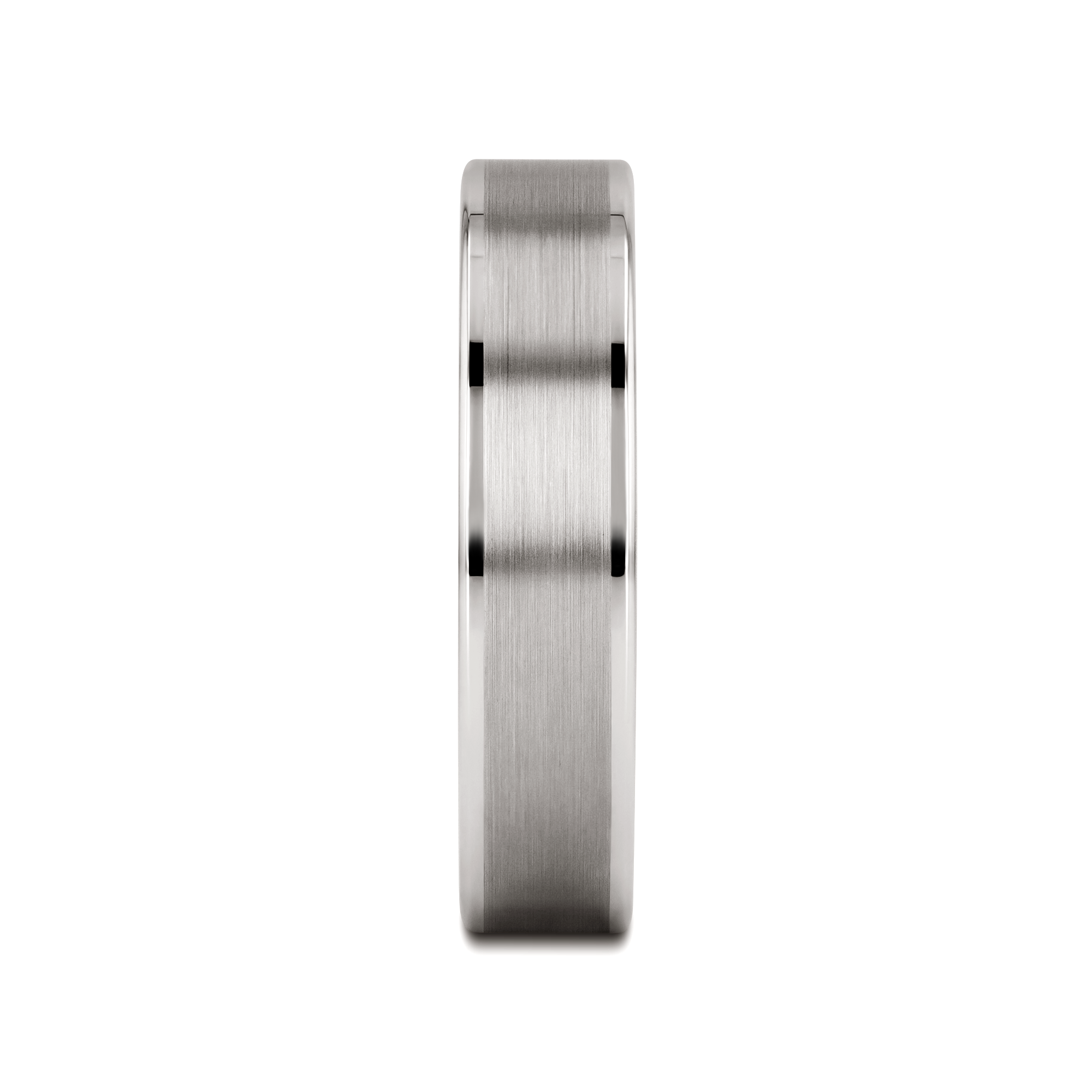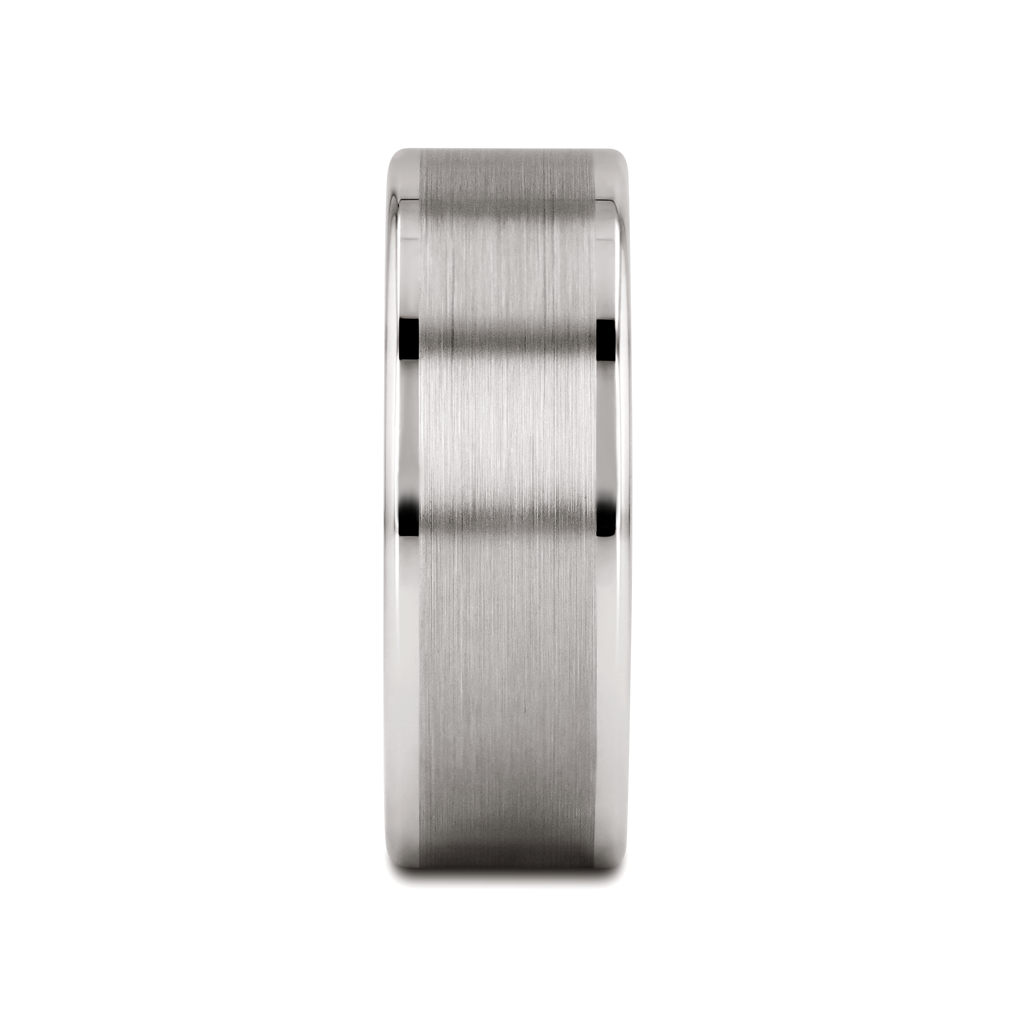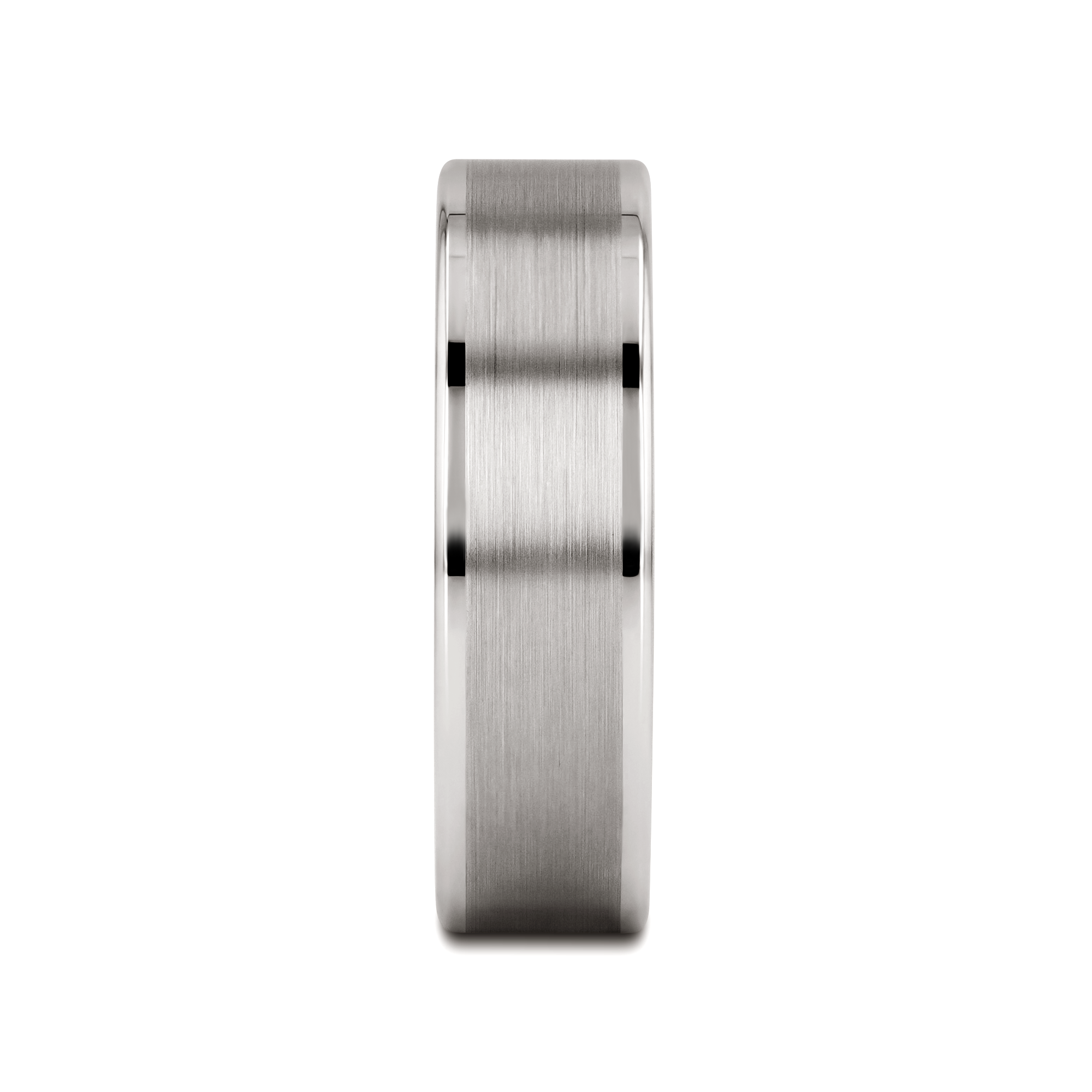 This precision crafted flat style white tungsten ring with brush finished center from our White Tungsten Rings line is made especially for couples who love the durability of tungsten and the bright white color of platinum. This style is available in 4mm, 6mm and 8mm wide for couples who prefer matching rings.
