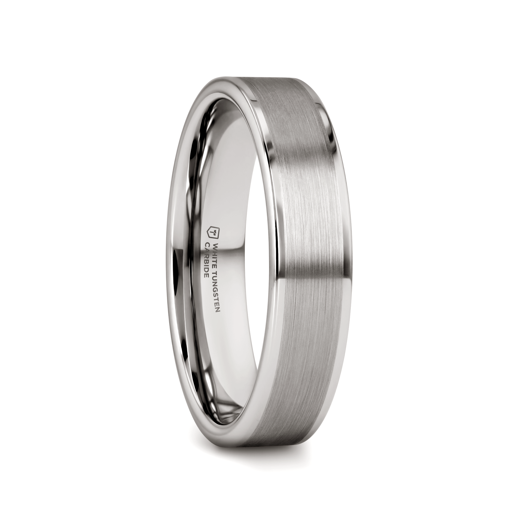 WAYNE Flat White Tungsten Wedding Band with Brushed Center - 4mm - 8mm