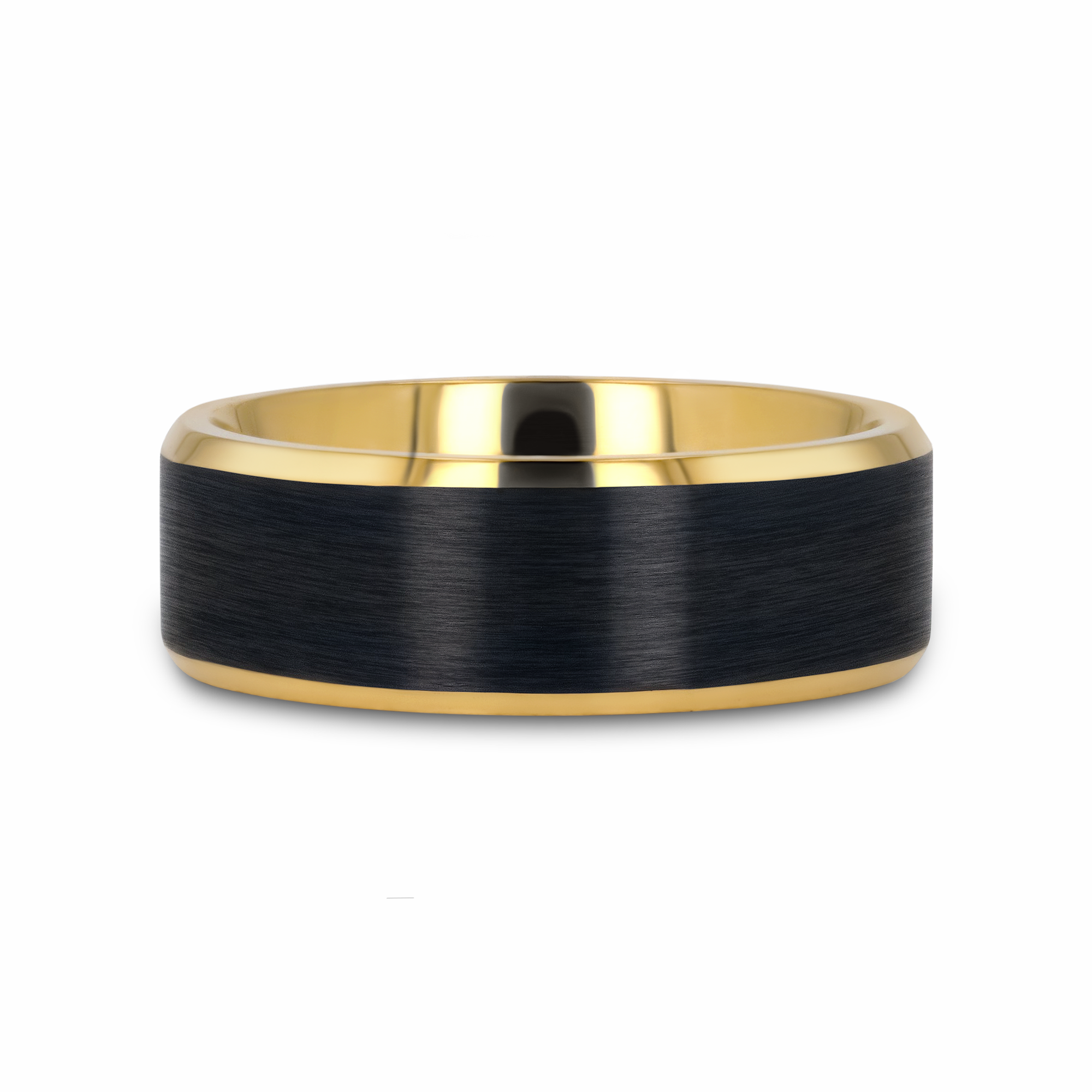 BEAUMONT Gold Plated Titanium Polished Beveled Ring with Brushed Black Center - 8mm
