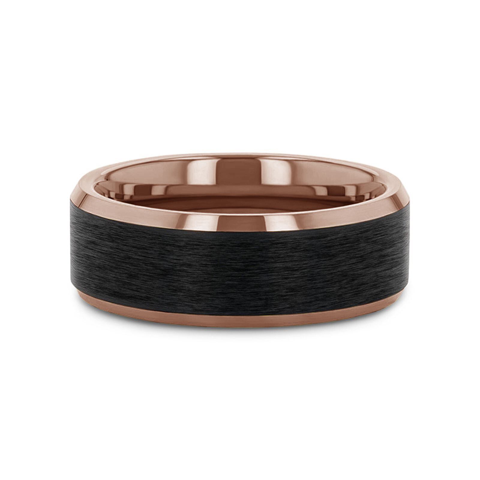 Crafted from sturdy tungsten, the FERROS ring showcases an elegant espresso plating with a polished beveled edge. The 8mm band features a striking brushed black center, creating a refined contrast that exudes timeless sophistication. Durable and stylish, this ring is an excellent choice for those who appreciate modern craftsmanship with a touch of classic charm.