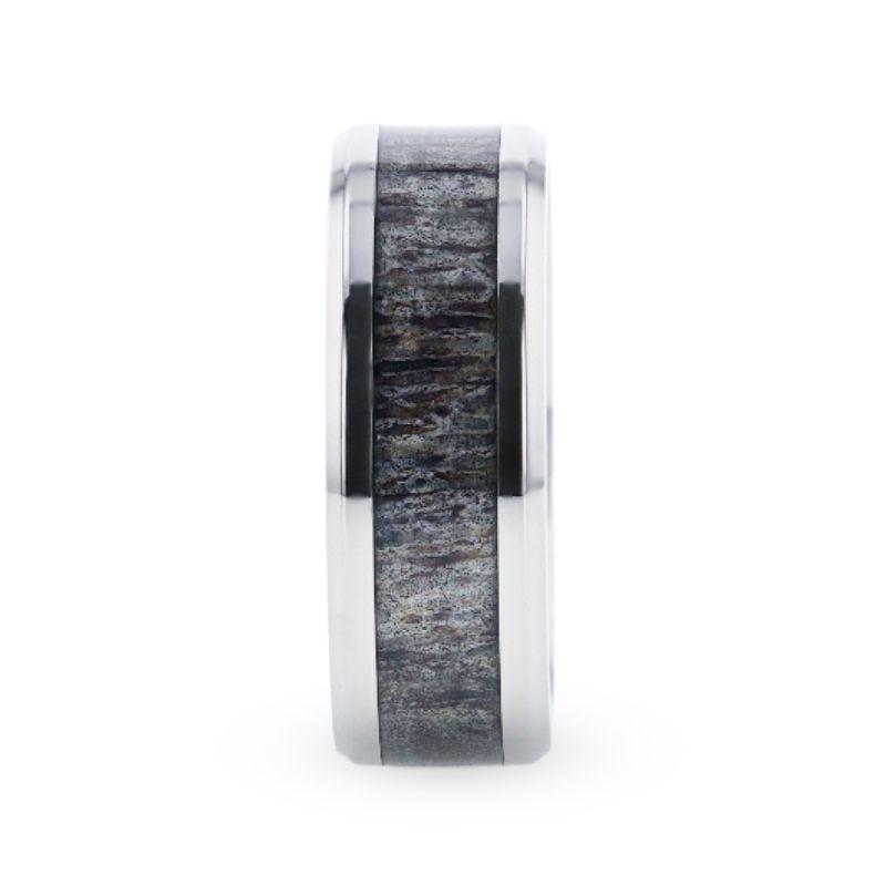 MELANISTIC Dark Deer Antler Inlaid Titanium Flat Polished Finish Men’s Wedding Ring Beveled Edges - 8mm