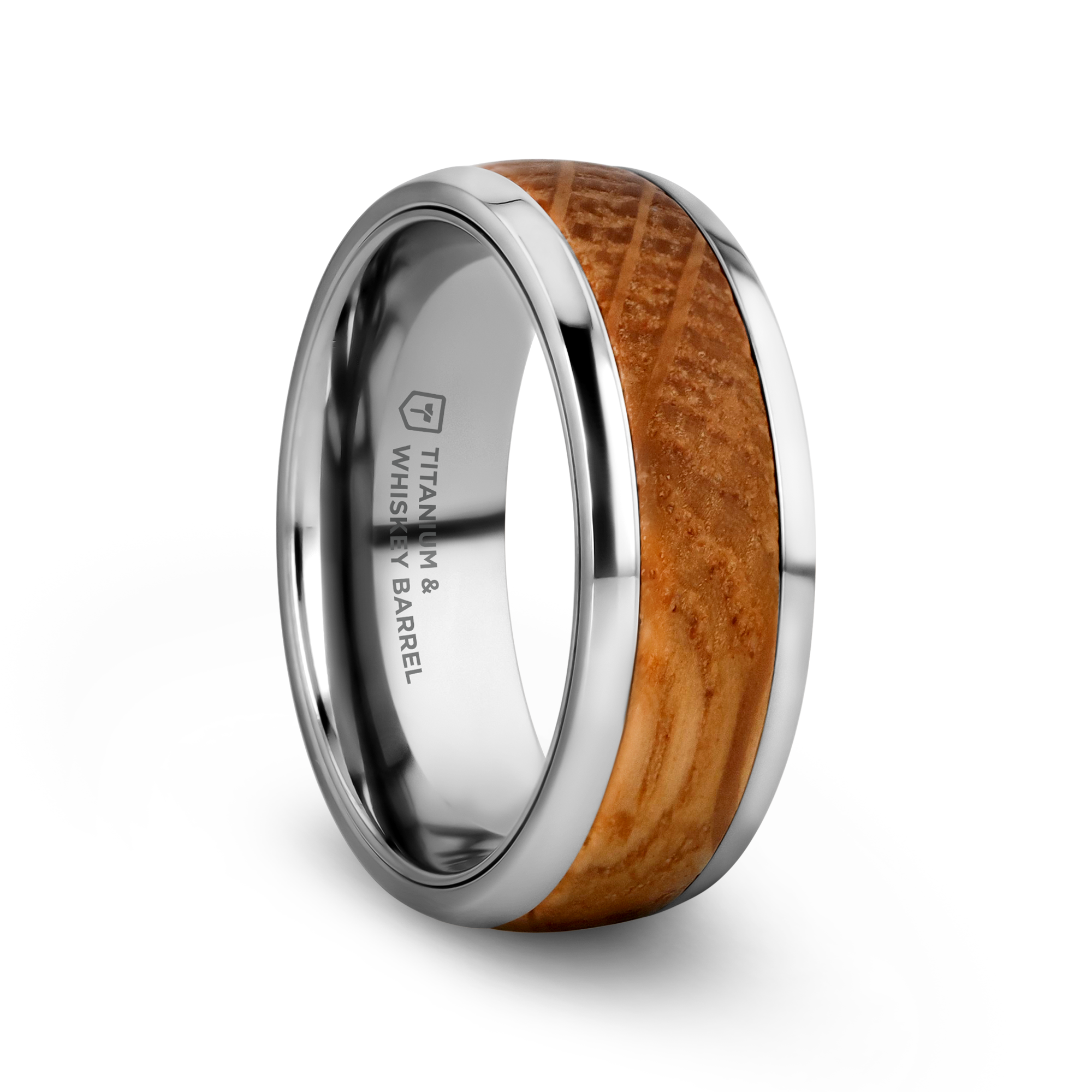 All bark and bite thanks to sweet Tennessee whiskey. The STAVE titanium men’s wedding band has domed, polished edges for a classic look. Made from whiskey barrels once used by Jack Daniel's Distillery.
