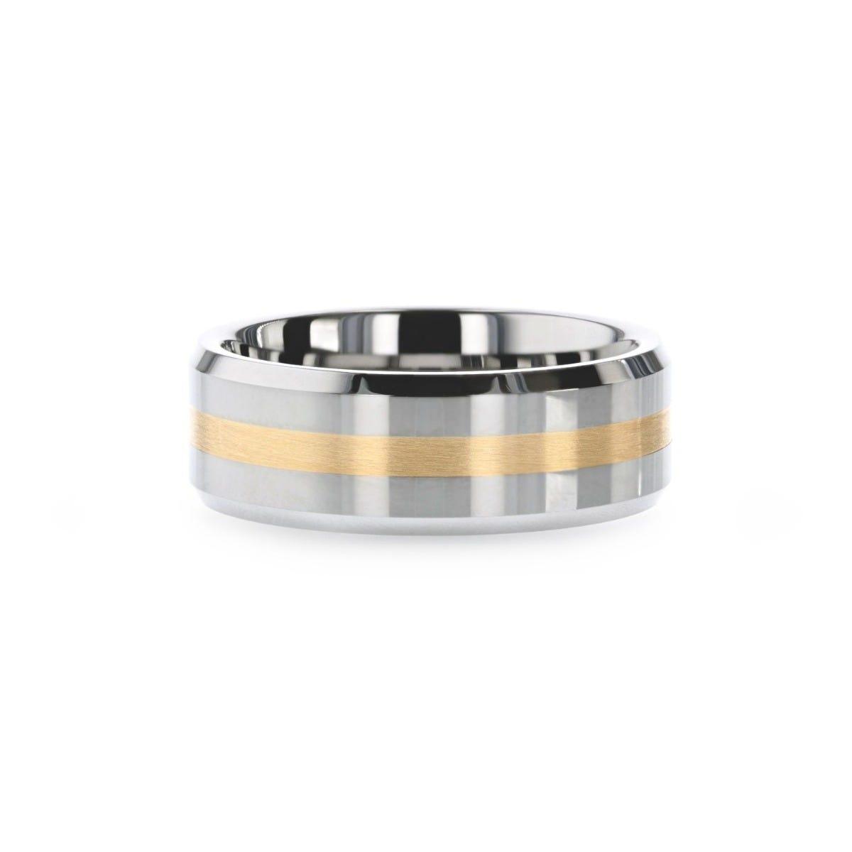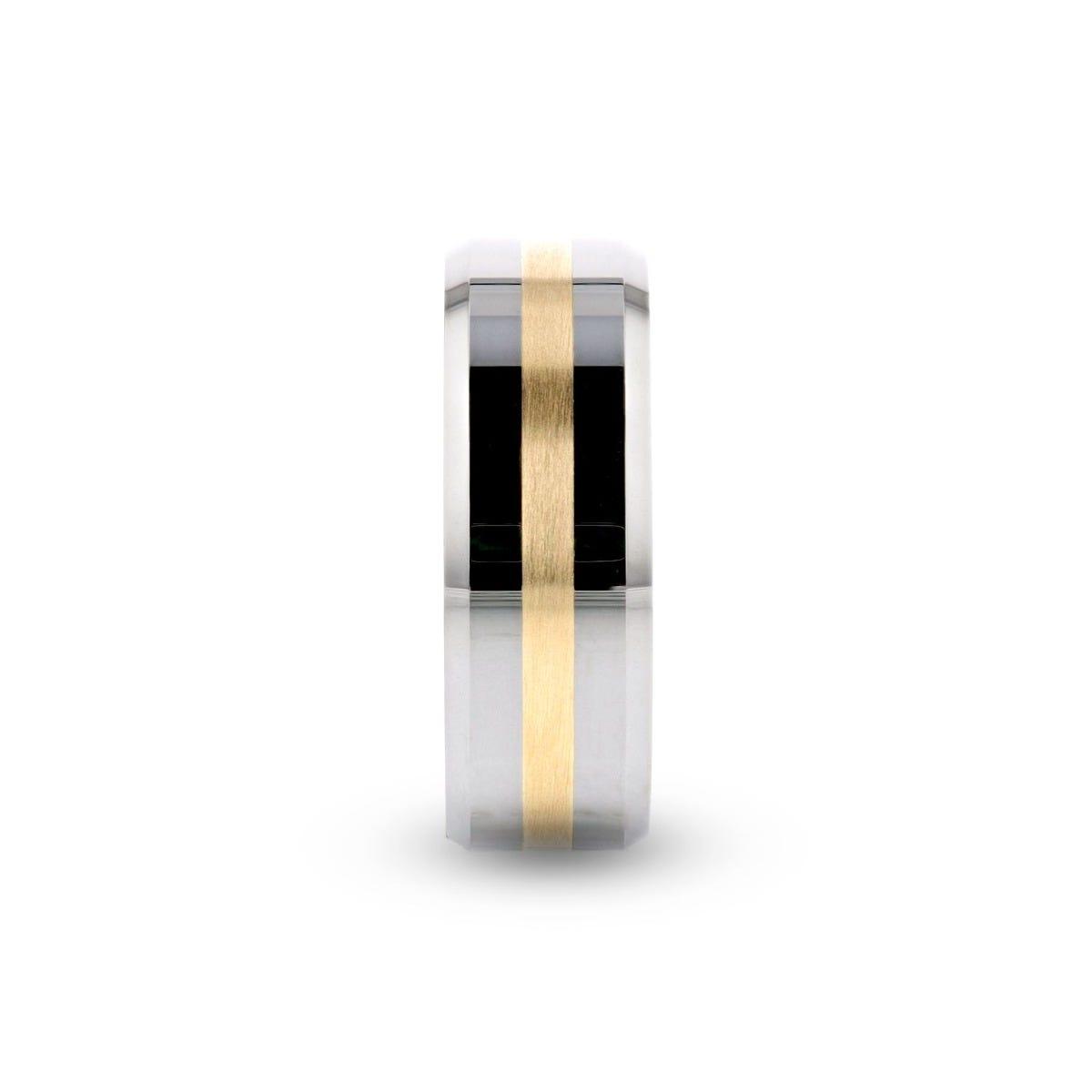 LEGIONAIRE Gold Inlaid Beveled Tungsten Ring - 6mm and 8mm