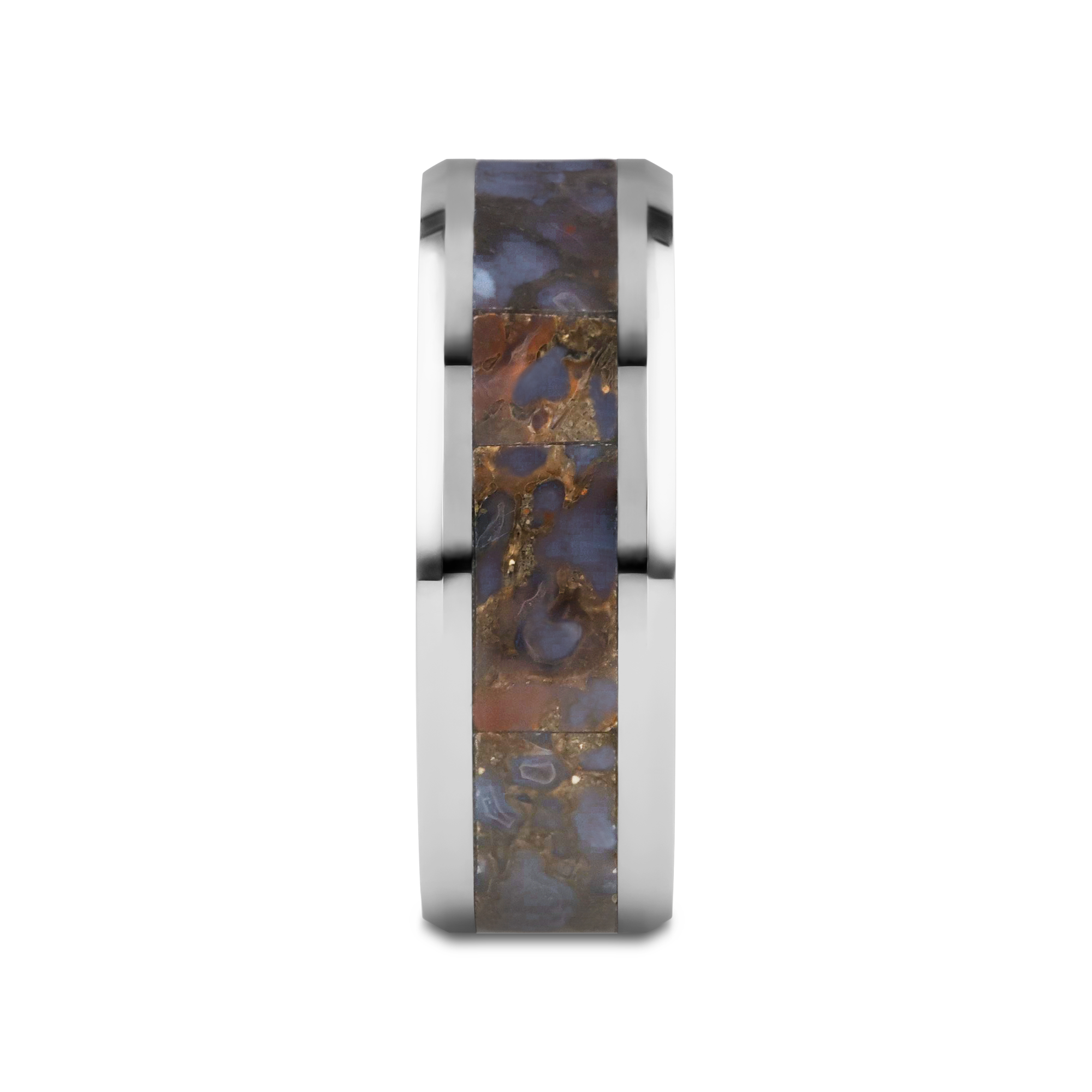 Blue Dinosaur Bone Inlaid Tungsten Carbide Beveled Edged Ring - 4mm