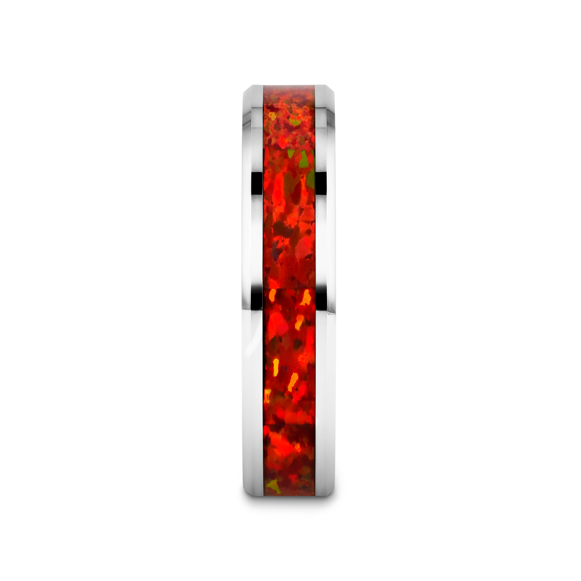NEBULA Tungsten Wedding Band with Beveled Edges and Red Opal Inlay - 4mm - 8mm