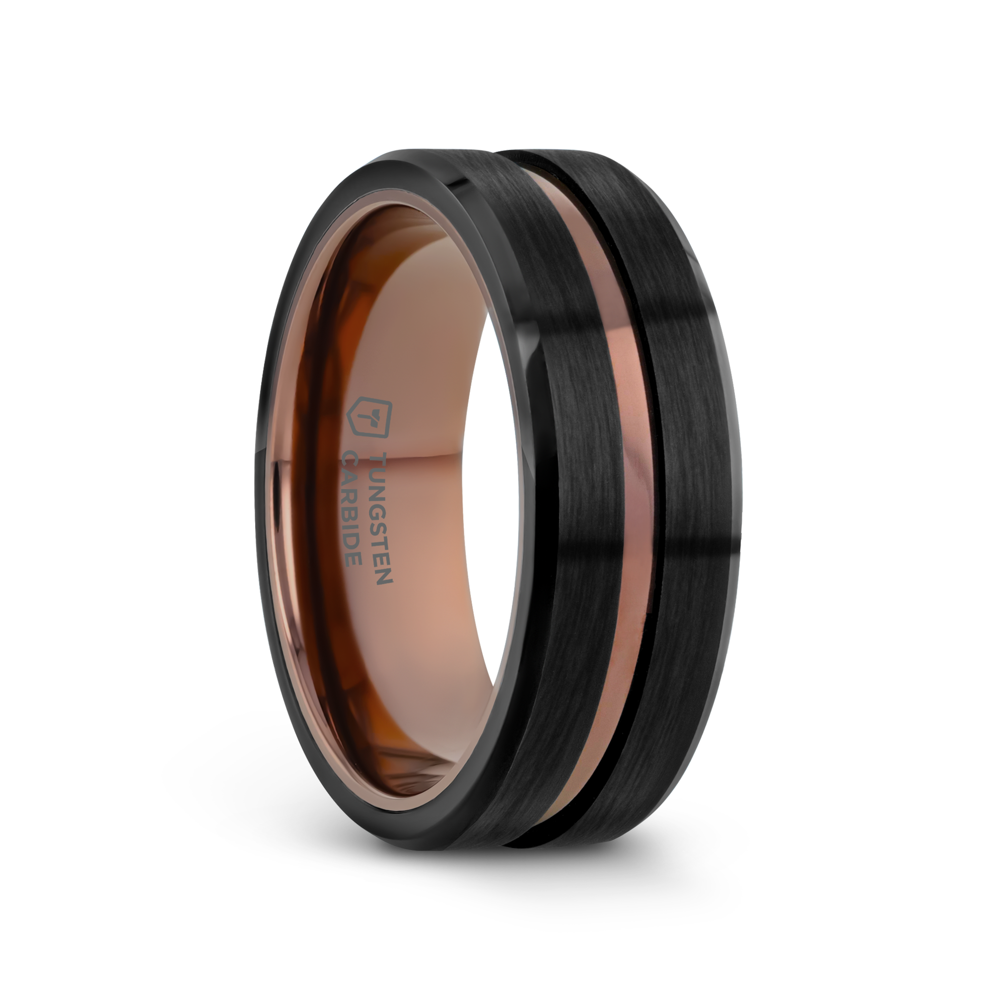 Crafted with expert precision, the NEVAN Flat Brushed Black Tungsten Men's Wedding Band features a sleek espresso groove center for a modern touch. Made of black tungsten, it offers exceptional durability and a lightweight feel. Perfect for stylish grooms who value quality and sophistication. Available in an 8mm width.