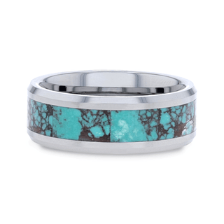 TURKIS Natural Turquoise Spider Web Inlay Tungsten Carbide ring with Beveled Polished Edges - 8mm