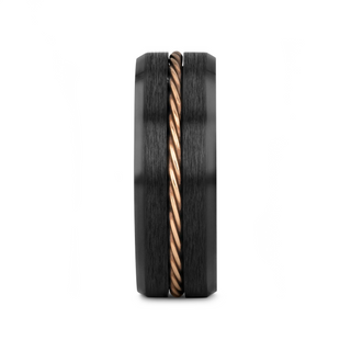 LANNISTER Men’s Tungsten Flat Wedding Band with Steel Wire Cable Inlay & Beveled Edges - 8mm