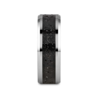 TARGARYEN Men’s Tungsten Wedding Band with Green Dinosaur Bone Inlay & Beveled Edges - 8mm