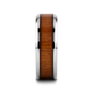 KOAN Titanium Polished Finish Koa Wood Inlaid Men’s Wedding Ring with Beveled Edges - 6mm & 8mm