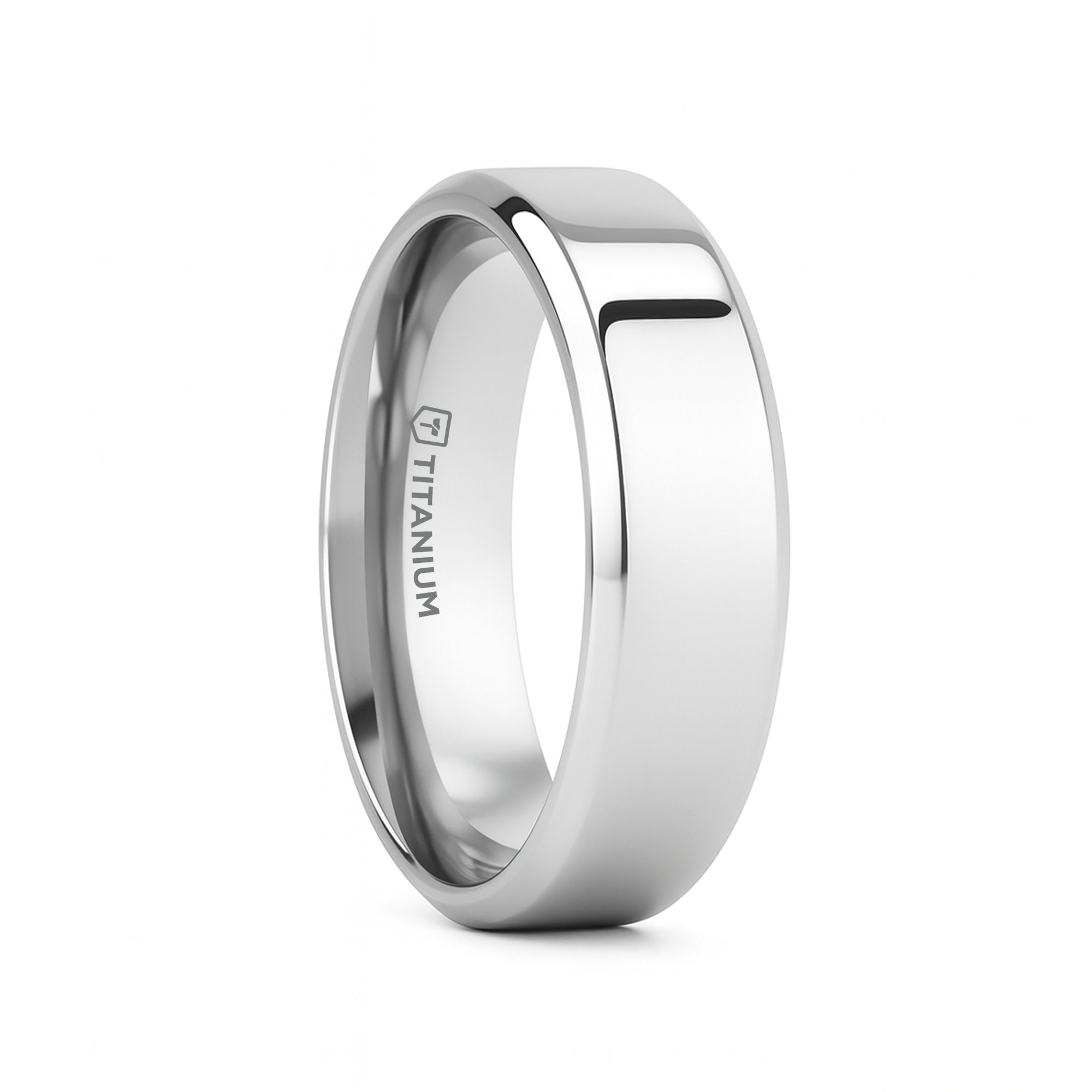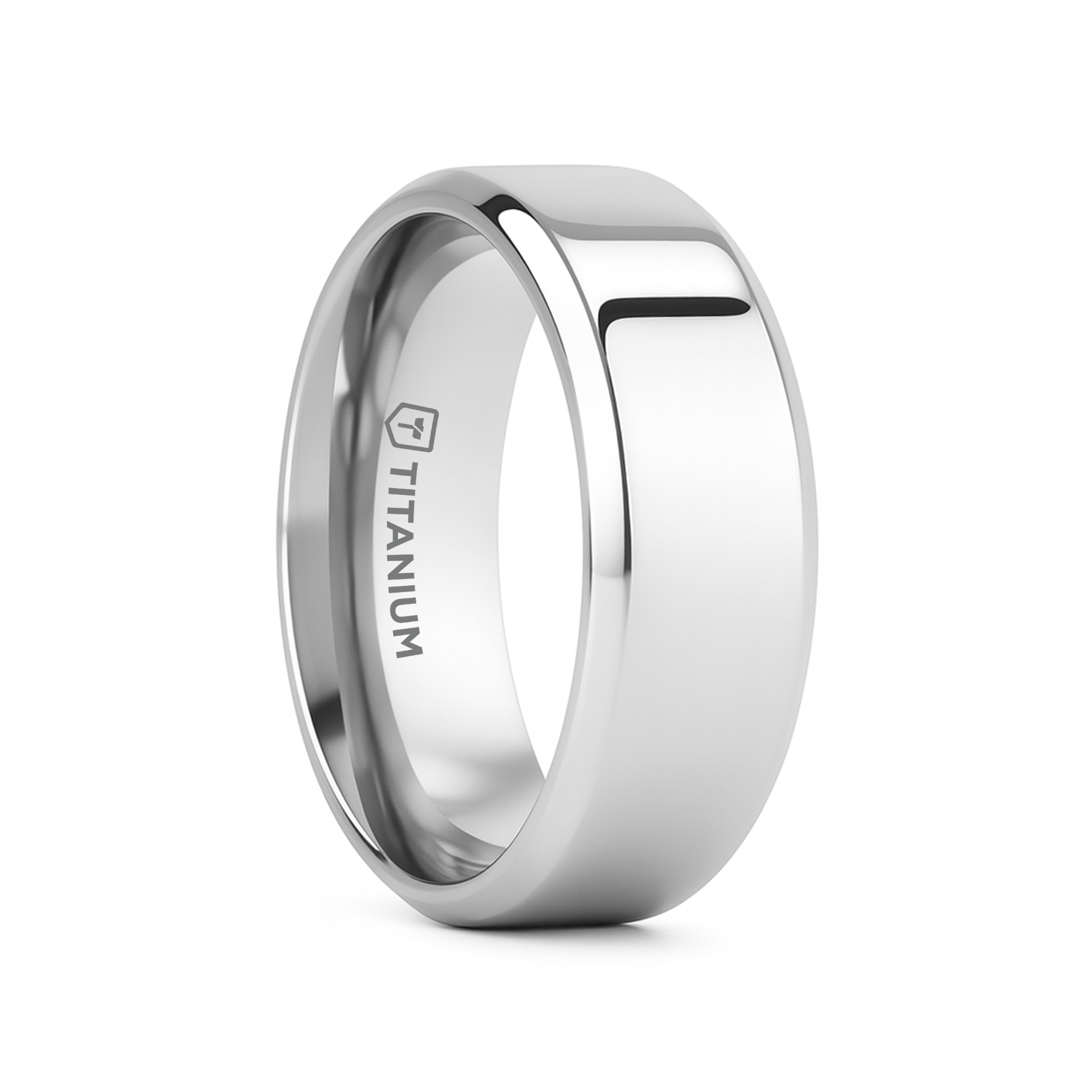 CORONAL Men’s Polished Finish Beveled Edges Titanium Wedding Ring with Raised Center - 6mm and 8mm