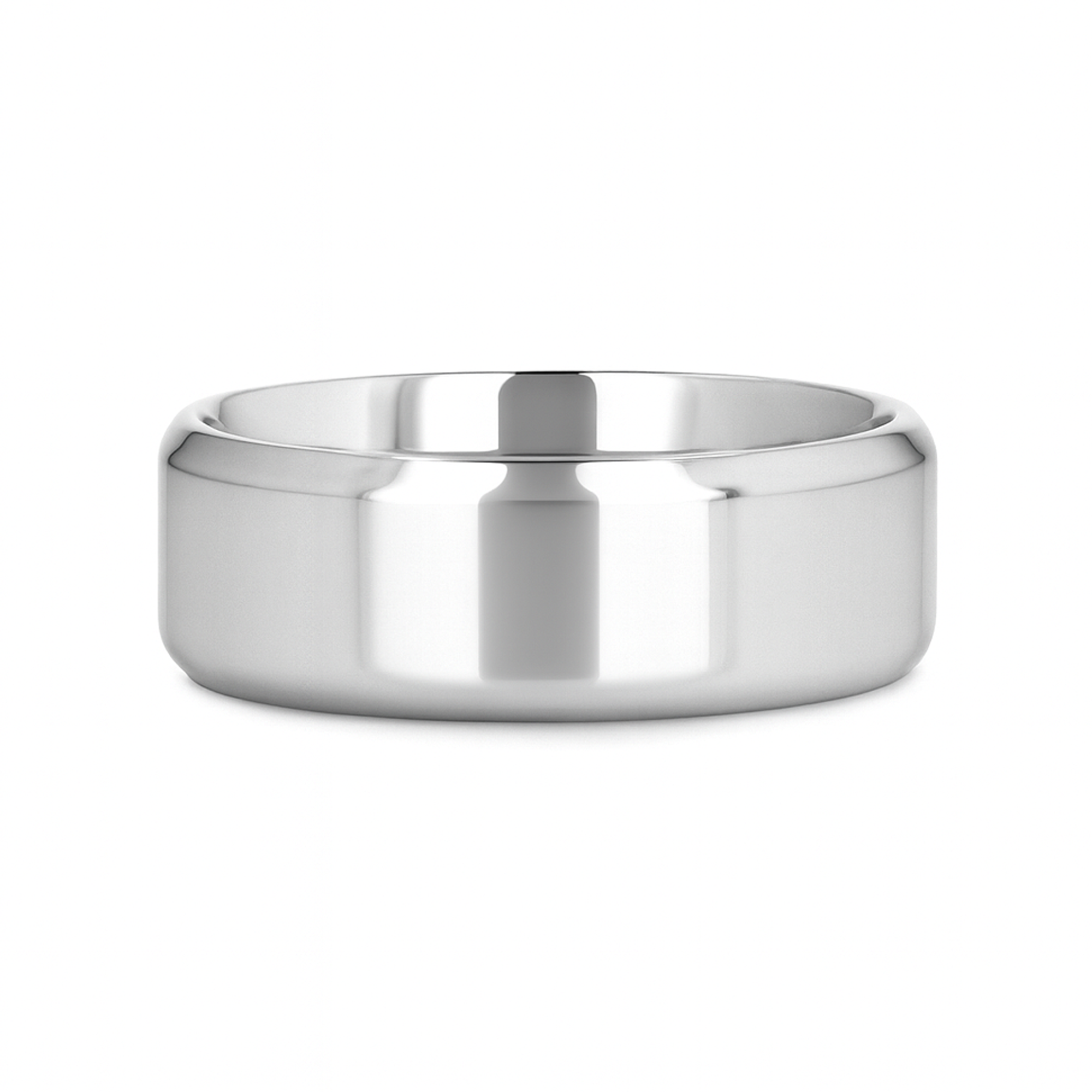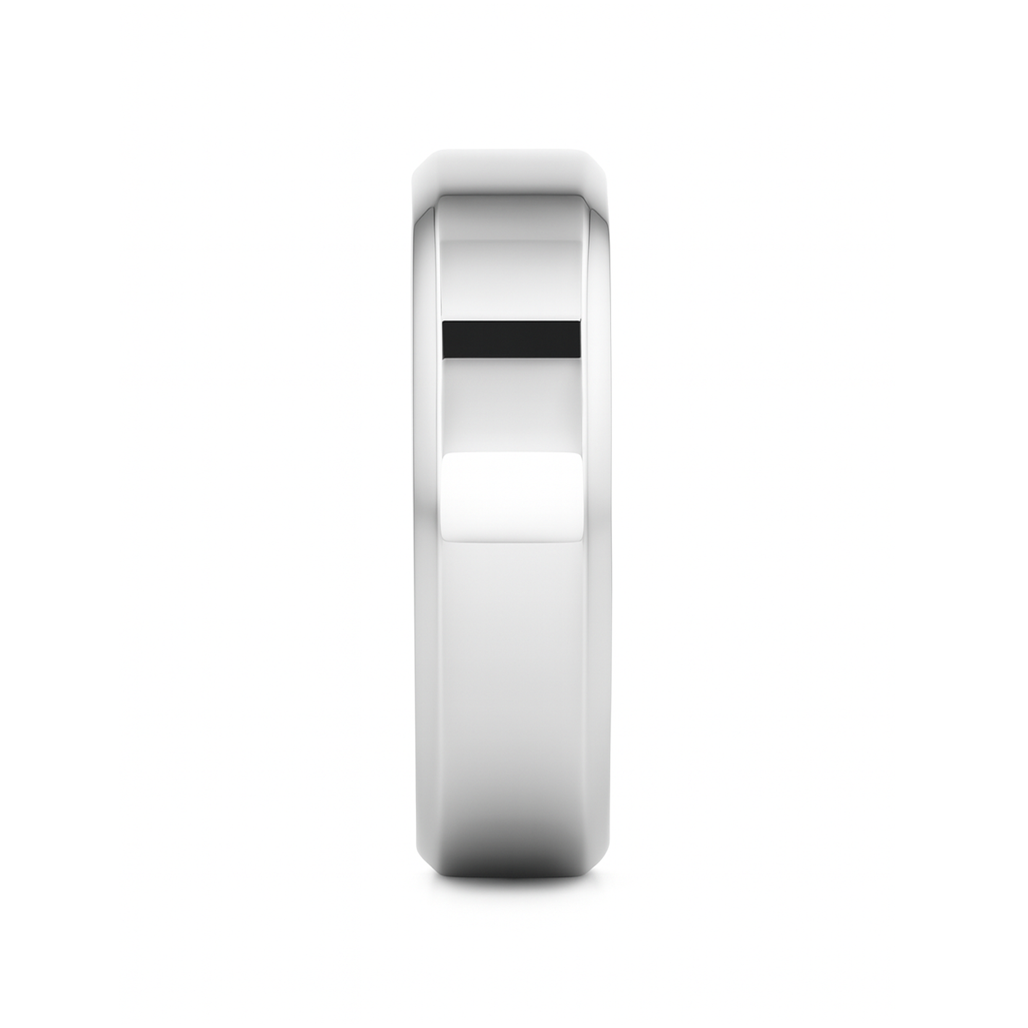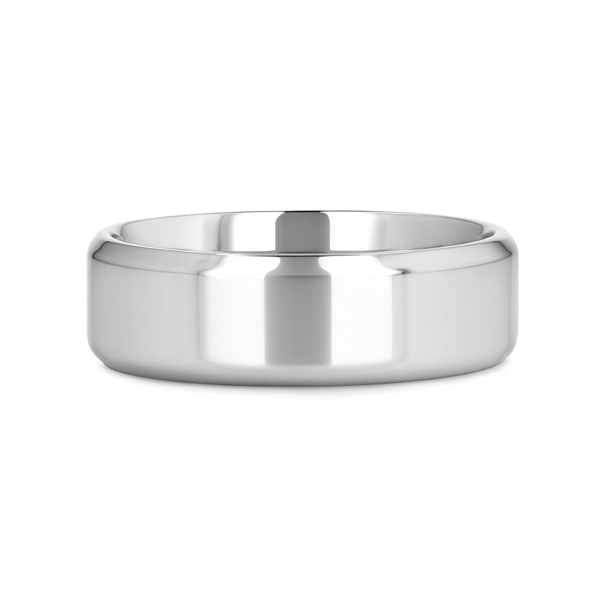 Exude confidence and style on your big day with this polished titanium wedding band for men. The beveled edges lead into the raised center, adding the perfect amount of detail. The inner band is made with a rounded comfort fit style.