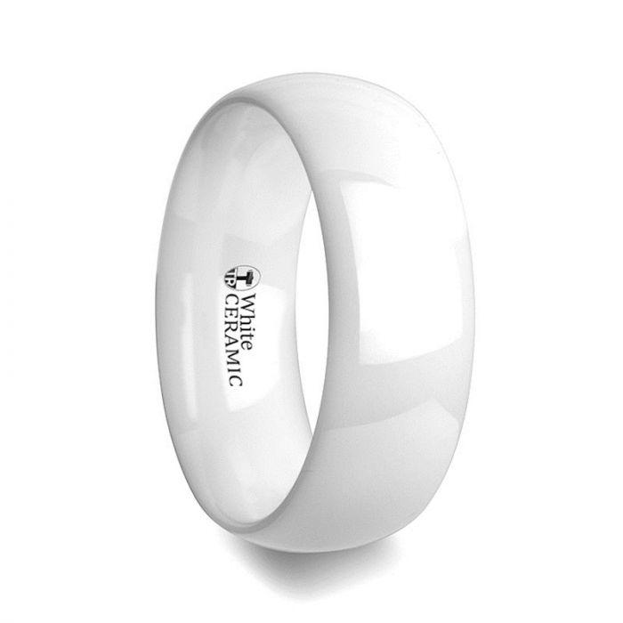 IVORY Domed Polish Finished White Ceramic Ring - 6mm and 8mm