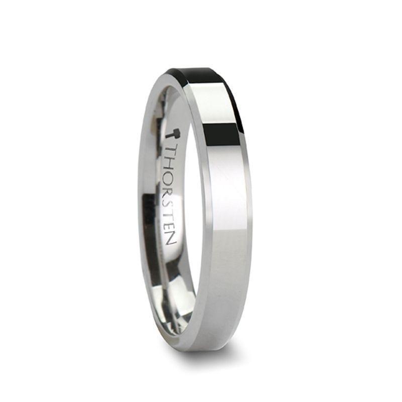 LINCOLN White Tungsten Wedding Band with Beveled Edges - 4mm - 12mm