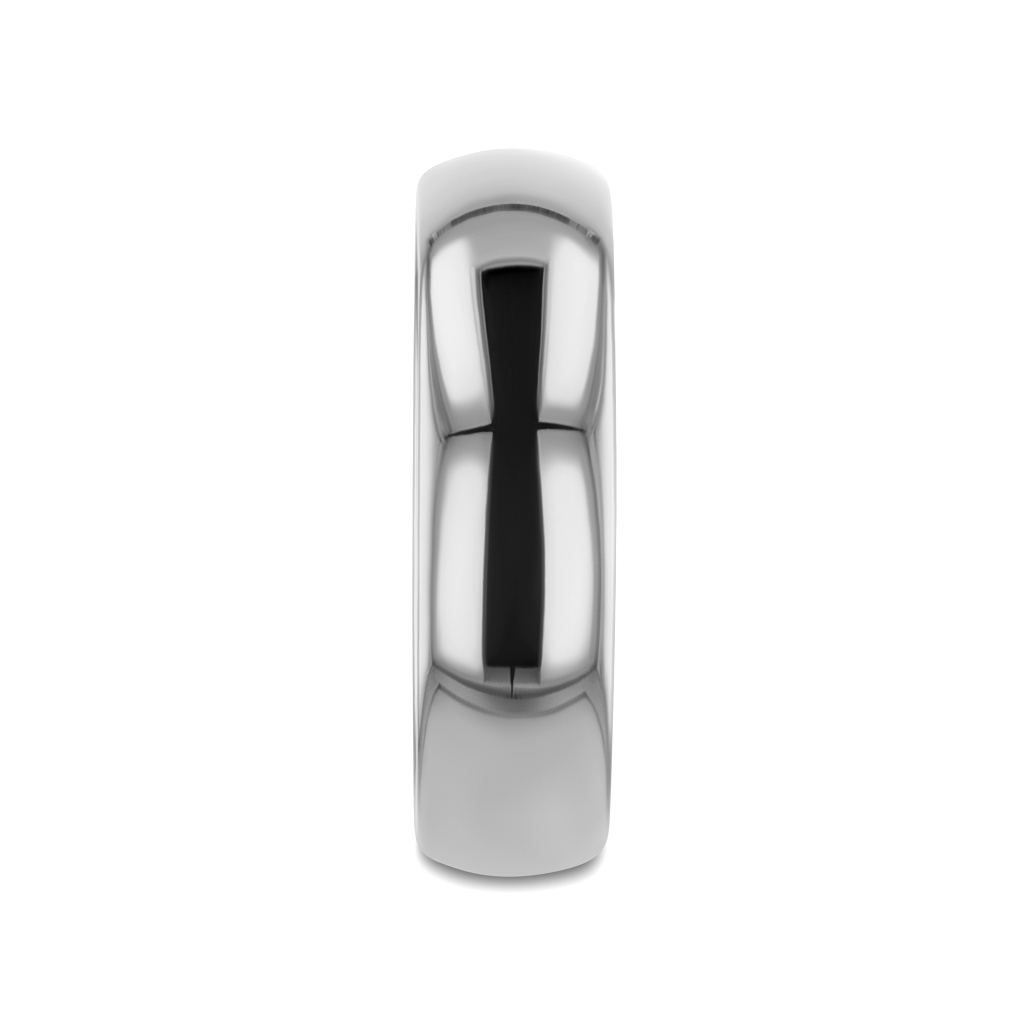 Subtle in style, this wedding band has a timeless design. It’s fashioned in titanium and made with a domed profile that adds a modern touch. The entire ring is buffed to a brilliant shine and the inner band is rounded for ultimate comfort.
