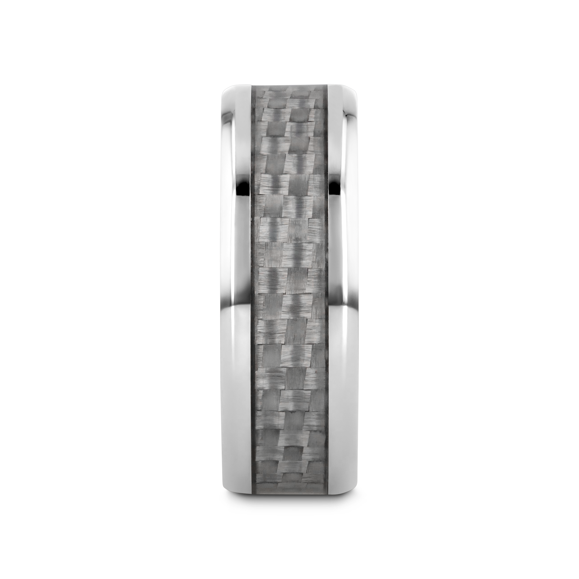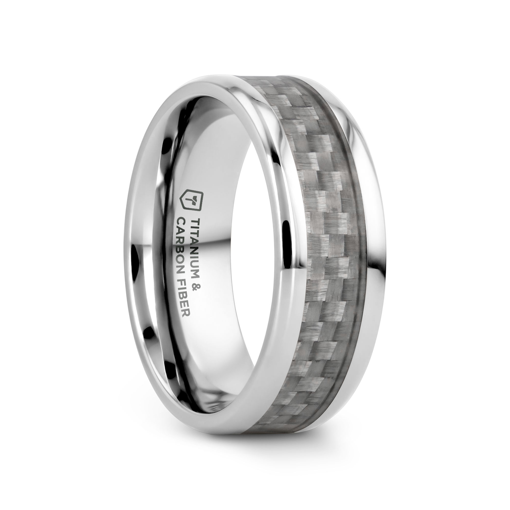 TANTALUS Men's Titanium Wedding Ring with White Carbon Fiber Inlay and Beveled Edges - 8mm